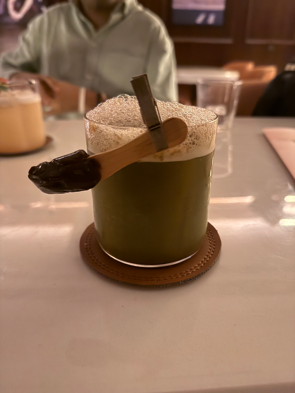 The Sadar Bazaar was the last of the cocktails we tried, and it deserves its own paragraph entirely. It is chaat in a glass. Delhi in a sip. Tangy, a little sweet, a little chaotic — everything that makes Sadar Bazaar one of Old Delhi's most beloved food streets, distilled into a drink. It is the sort of thing that should not work in theory and works brilliantly in practice, which is really the thesis statement of the entire cocktail menu. Each drink here is built around a smell, a taste, a place that shaped someone's college years. You can feel the specificity of that intention in every glass.