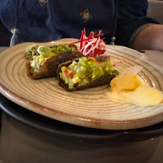 The menu truly shines in its middle section. Brie Tempura with Chicken Katsu Crunch Rolls arrives as a textural masterpiece—creamy, crispy, all at once. The Avocado Crunch Cones and Salmon Crunch Cones show the kitchen's willingness to play with form as much as flavour. And then there are the Sushi Tacos—spicy mushroom and salmon versions—which are exactly the kind of fusion moment that shouldn't work but absolutely does when executed with this much care.